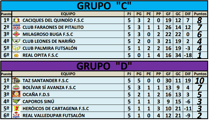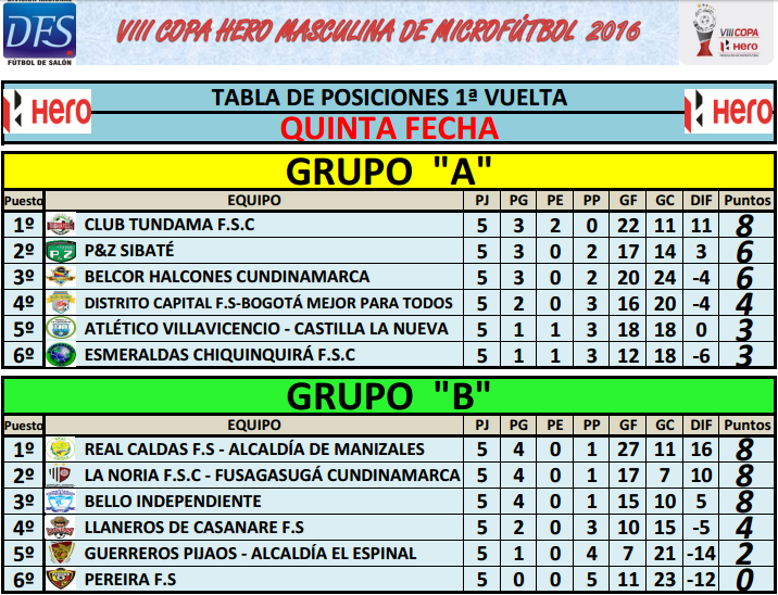 Disputadas cinco fechas, las posiciones de cada uno de los grupos se encuentra de la siguiente manera. La última fecha de los partidos de ida de la VIII Copa Hero de Microfútbol, dejó a los líderes más firmes que nunca.