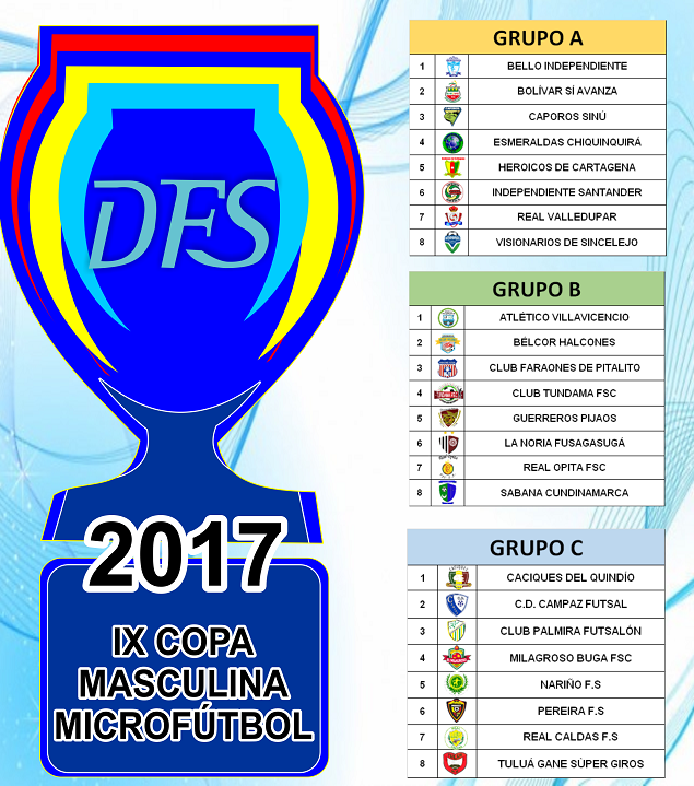 La División Nacional de Fútbol de Salón dio a conocer la distribución de los grupos y el fixture de la IX Copa Profesional Masculina de Microfútbol que en definitiva comenzará el 20 de mayo. Atendiendo las necesidades de nuestro nuevo aliado televisivo para la planeación de sus emisiones de la Copa por Señal Colombia, y de acuerdo a la misma experiencia, que por tantos años ha acumulado el torneo de microfútbol por clubes más importante del país, la División tomó la decisión de no esperar más y socializar su normatividad para el 2017.